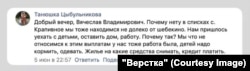 Олеся ответила на сообщения журналиста "Вёрстки". Она рассказала, что власти пока не дали ей ни одного ответа. "Спасибо, что хоть кто-то заметил комментарий! Ведь нас не пускают туда, чтобы родителям помочь воды наносить… И продукты передать", – написала она, но через некоторое время удалила свои сообщения, решив, что переписывается не с журналистом.
